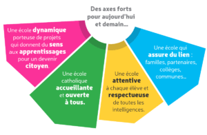 De fait elle se doit d’accueillir tous les enfants et elle dispense un enseignement conformément aux programmes d’instructions officielles du ministère de l’éducation nationale et une éducation qui trouve ses finalités dans les statuts de l’enseignement catholique.